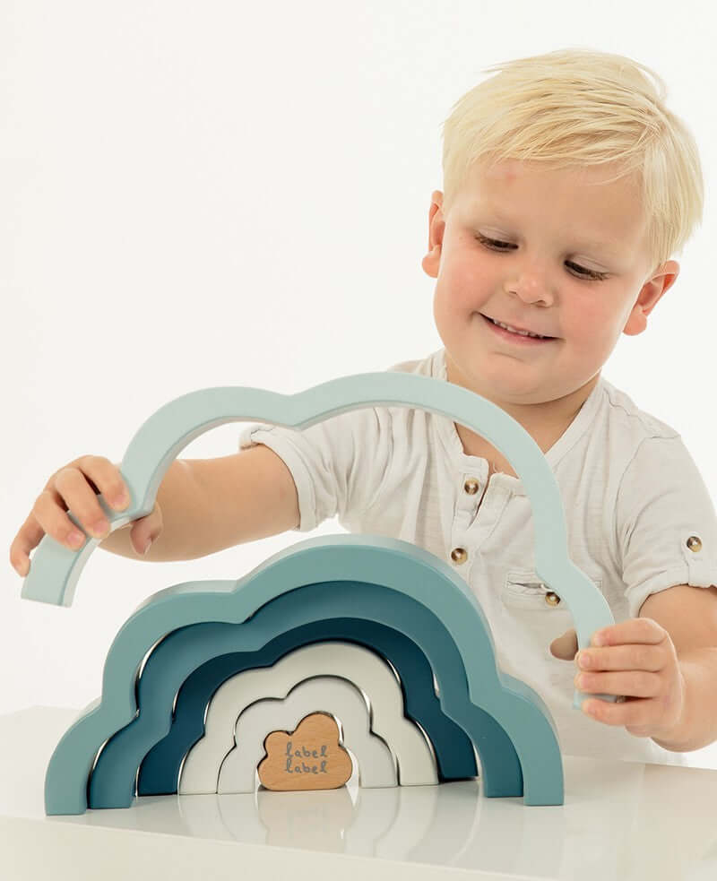 De Label Label Regenboogpuzzel is vervaardigd uit kwaliteitsvol FSC gecertificeerd hout en elke wolkenboog is voorzien van de zachte Label Label kleurtinten met behulp van kindvriendelijke verf op waterbasis.