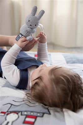 Lekker rammelen met de grijs met wit gestreepte rammelaar van nijntje! Schud de transparante ring en hoor een geluidje. Deze rammelaar uit de Fun at Sea collectie stimuleert de hand-oog coördinatie van het kindje. Afmetingen: 12 x 7 x 12 cm. Vervaardigd van 100% polyester. Op de hand wasbaar. Wordt op kaart geleverd. Geschikt voor alle leeftijden.